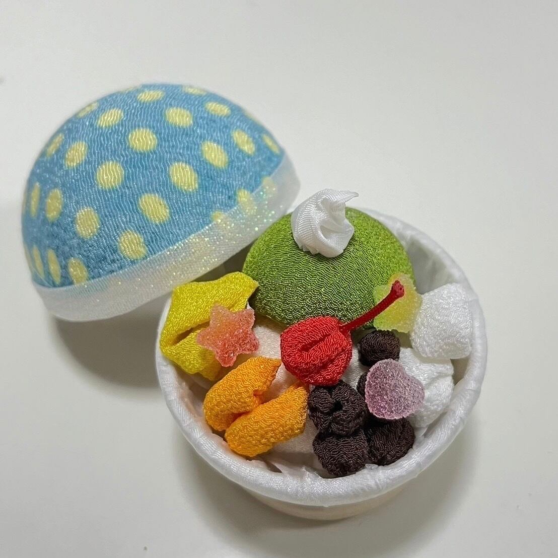 ・玉手箱『抹茶アイスの白玉みつ豆』を作るための材料(玉皮、布、紐等)